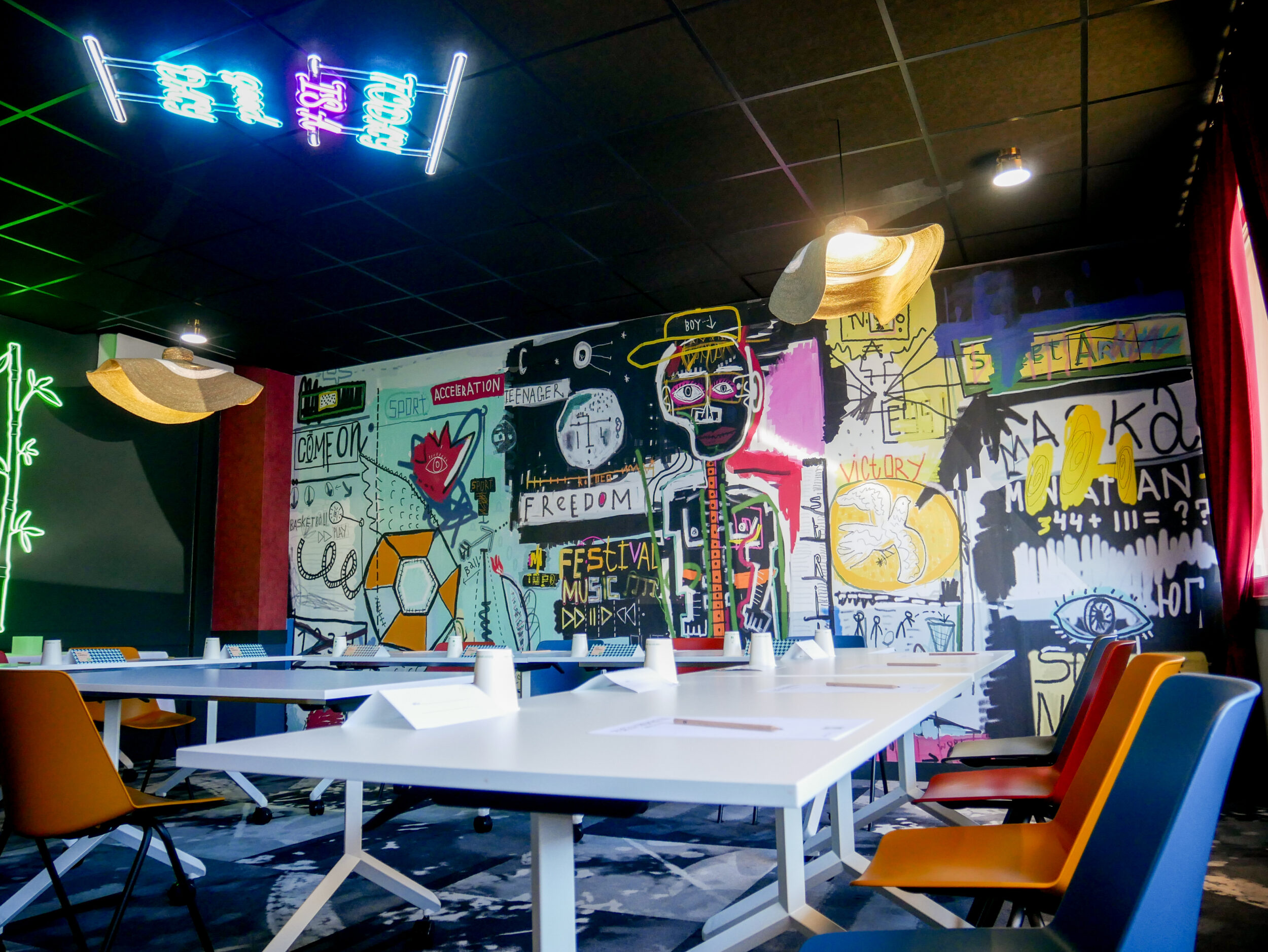 Our three fully equipped rooms (video projector, flip chart, high-speed Wi-Fi, modular furniture) are designed to support the success of your meetings, training sessions, or conferences.